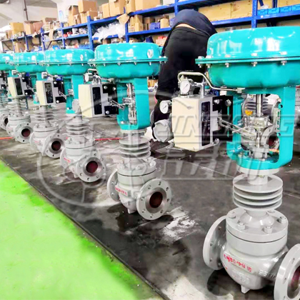 溫控型調(diào)節(jié)閥的結(jié)構(gòu)與原理,工作前主閥芯處于半開(kāi)位置,傳感器處于自然狀態(tài)。接上電源,主閥芯全開(kāi)。介質(zhì)由箭頭方向流入主閥體經(jīng)閥芯對(duì)儲(chǔ)熱箱進(jìn)行加熱。當(dāng)溫度升到相應(yīng)設(shè)定值時(shí),傳感器即產(chǎn)生相應(yīng)線性信號(hào)輸入至溫控調(diào)節(jié)儀,溫控調(diào)節(jié)儀通過(guò)比較傳感器溫度信號(hào)及用戶設(shè)定溫度比較,進(jìn)行PID運(yùn)算,輸出4~20mA電信號(hào)至電-氣定位器,定位器調(diào)節(jié)信號(hào)驅(qū)動(dòng)氣動(dòng)執(zhí)行器,驅(qū)動(dòng)閥桿、閿芯產(chǎn)生位移,關(guān)閉主閥芯。通過(guò)閉環(huán)控制,進(jìn)行連續(xù)調(diào)節(jié)來(lái)控制閥后溫度至設(shè)定值,冷卻型反之,并可根據(jù)使用現(xiàn)場(chǎng)系統(tǒng)設(shè)備的不同靈活調(diào)整比例帶,積分時(shí)間等參數(shù),使之與系統(tǒng)達(dá)到zui佳匹配,溫差比例小,反應(yīng)靈敏,使用壽命高。![]()